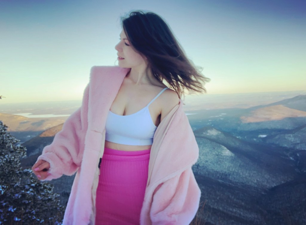 February 21, 2021. I decided to have a dance party with myself in 1980s vintage on Wittenberg peak in the Catskill Mountains. Was it a practical idea to drag a bulky bubblegum pink, faux fur coat that weighs 10 lbs to the summit? Probably not. Was it worth it to sing Whitney Houston’s “I Wanna Dance With Somebody” like a tone-deaf marshmallow peep at sunset? Absolutely!